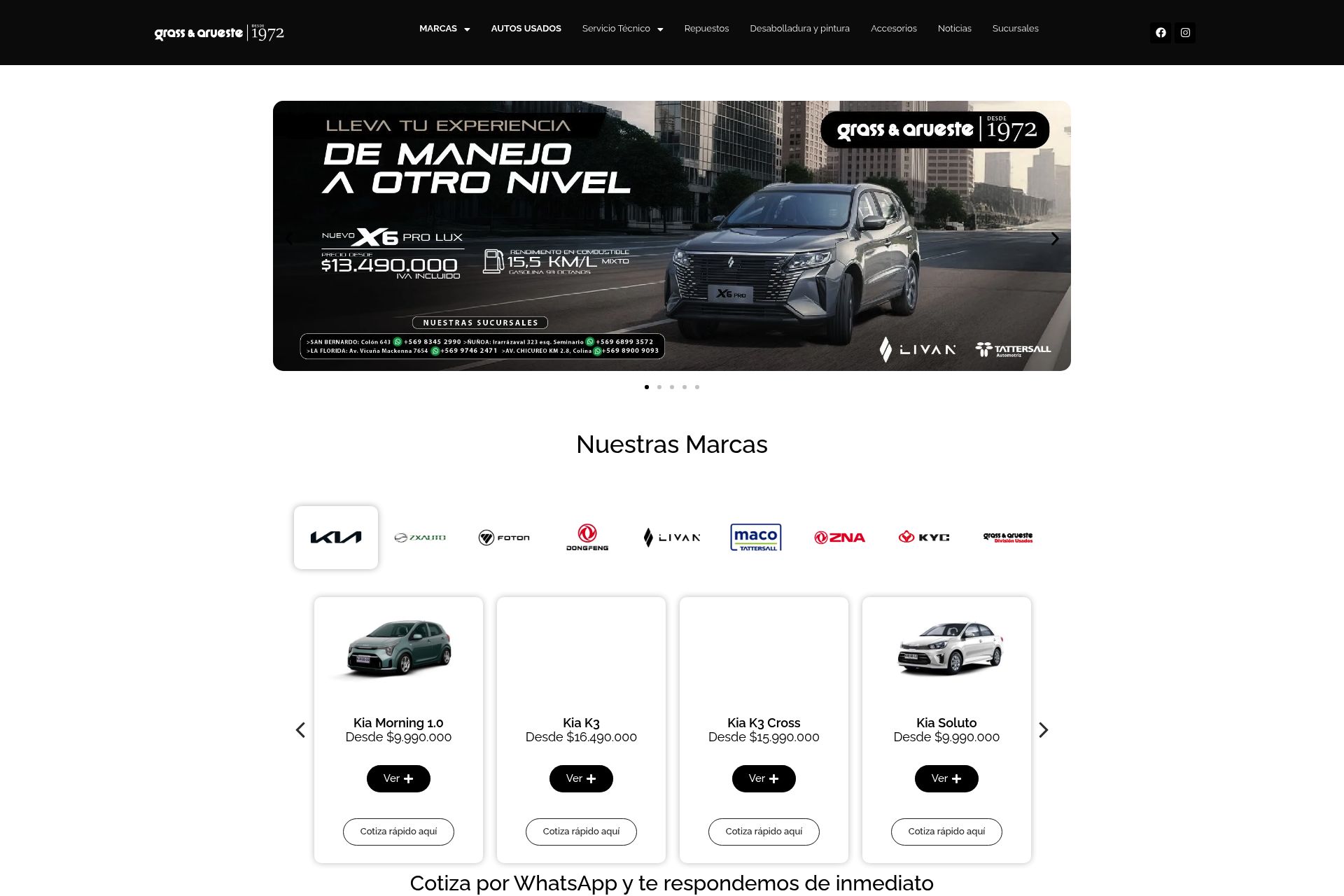 Grass y Arueste Ltda. is an automotive retail company with a history dating back to 1972. With over five decades of experience, the company has established itself in the Chilean market by commercializing both new and pre-owned vehicles. Their offerings extend beyond sales, encompassing a range of services designed to meet the diverse needs of vehicle owners. Grass y Arueste operates with a commitment to providing comprehensive automotive solutions, ensuring customer satisfaction through quality products and reliable services.