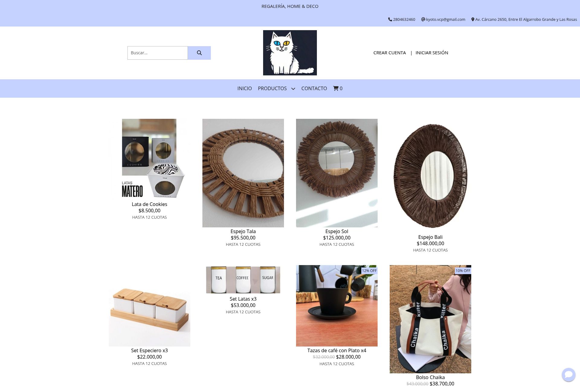Kyoto, based in Villa Carlos Paz, Argentina, is a retailer specializing in home décor, gifts, and a wide array of accessories. With a physical presence on Av. Cárcano 2650, Kyoto extends its reach through its online store, offering a diverse catalog of products designed to enhance living spaces and cater to various lifestyle needs. The company's online platform provides a comprehensive shopping experience, allowing customers to explore and purchase items from the comfort of their homes.