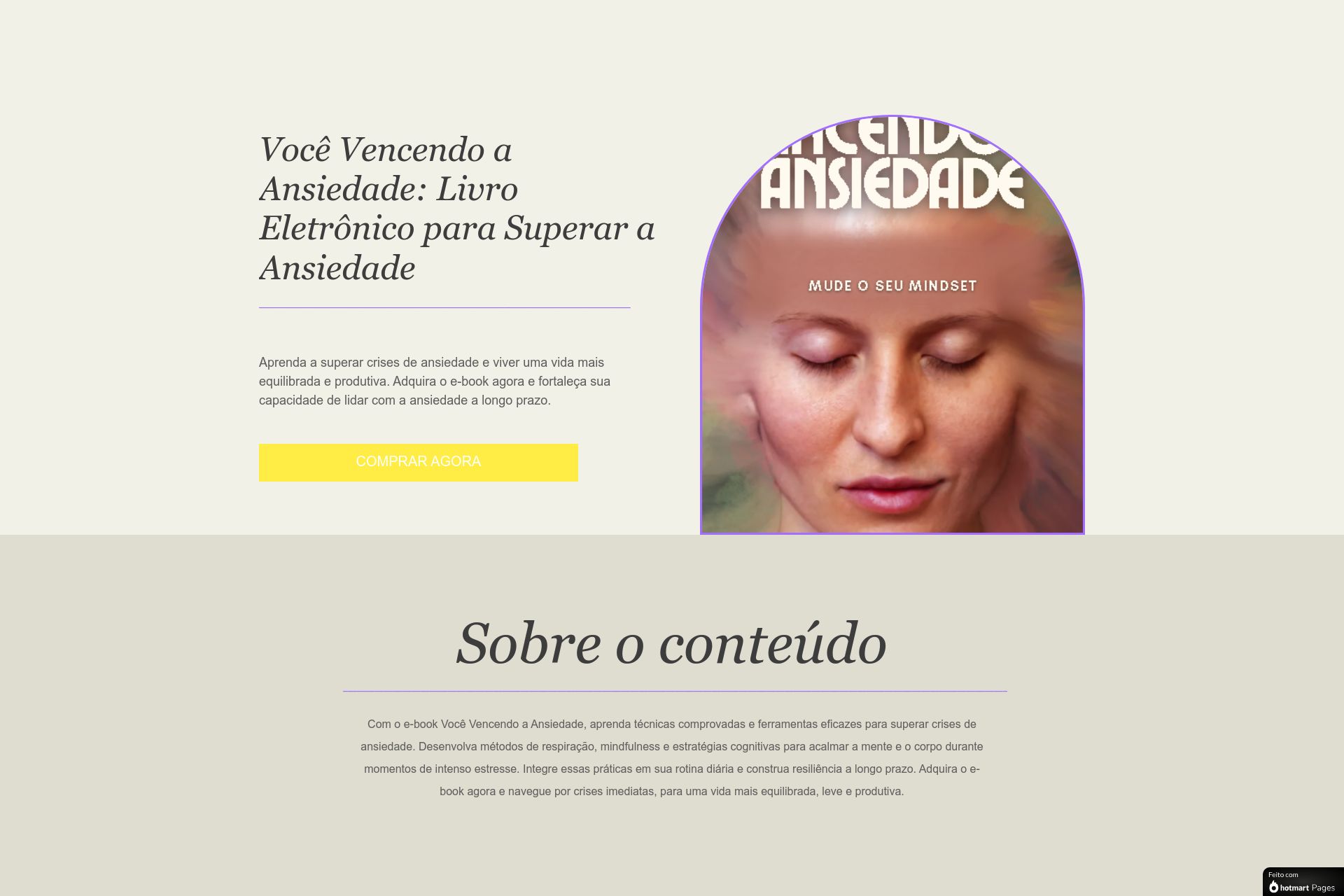 O e-book "Você Vencendo a Ansiedade" apresenta técnicas e ferramentas para auxiliar na superação de crises de ansiedade, visando uma vida mais equilibrada e produtiva. O conteúdo aborda métodos de respiração, mindfulness e estratégias cognitivas para acalmar a mente e o corpo em momentos de estresse. Aline Carvalho, a criadora do e-book, possui experiência em Gestão de Pessoas, Liderança Positiva, Educação Continuada, Transtornos de Ansiedade, Esgotamento Profissional e Transição de Carreira. Sua abordagem holística, guiada pela Psicologia Positiva e práticas de Mindfulness, reflete sua dedicação em promover o bem-estar.