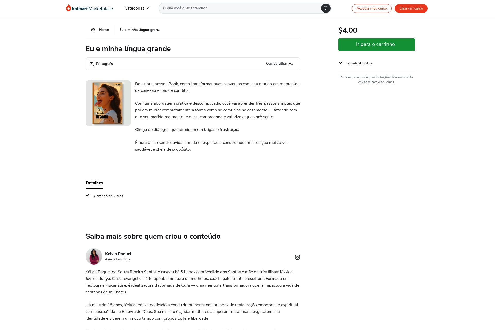 Kélvia Raquel has also authored an eBook titled "Eu e minha língua grande" ("Me and My Big Tongue"), which focuses on improving communication within marriage. The eBook offers practical advice and strategies for women to transform their conversations with their husbands into moments of connection rather than conflict. It emphasizes the importance of being heard, loved, and respected in a relationship, and provides tools for building a healthier and more fulfilling partnership. The eBook aims to help women communicate their feelings effectively, fostering understanding and appreciation from their husbands. By addressing communication challenges, Kélvia seeks to empower women to create stronger and more meaningful relationships.